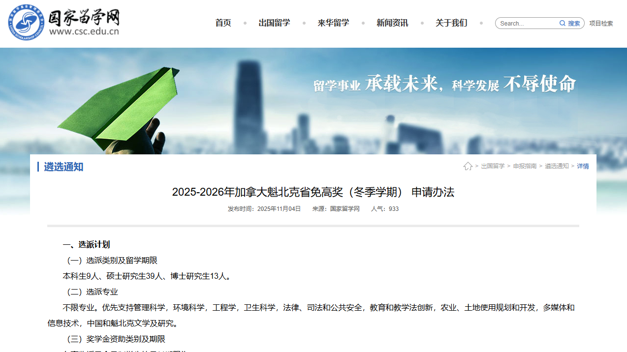2025-2026年加拿大魁北克省免高獎(冬季學期) 申請辦法