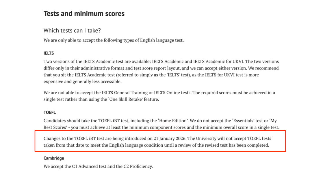 突發(fā)!牛津官宣:2026年1月21起,研究生申請不再接受新托福!
